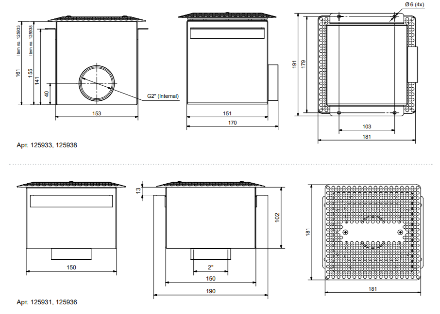 Заборные форсунки боковой вход/нижний вход, лайнер/бетон. 2 дюйма