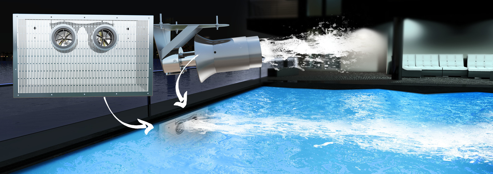 Донная форсунка подачи воды для бетонных бассейнов.