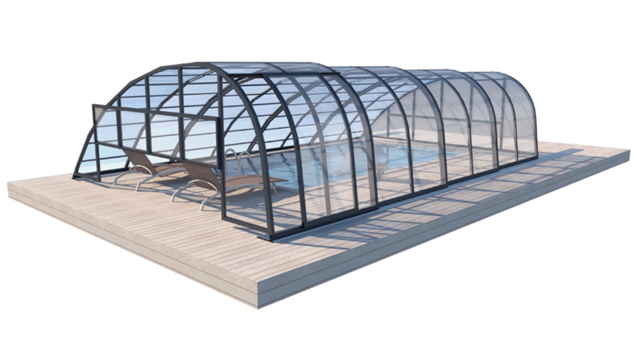 Одним из главных преимуществ накрытия для бассейна Panorama является возможность регулировки высоты конструкции в соответствии с вашими потребностями (до 2,5 метров), что обеспечивает свободное перемещение и удовольствие в бассейне. Удобство входа в бассейн обеспечивают раздвижные двери, которые можно спроектировать на любой стене.