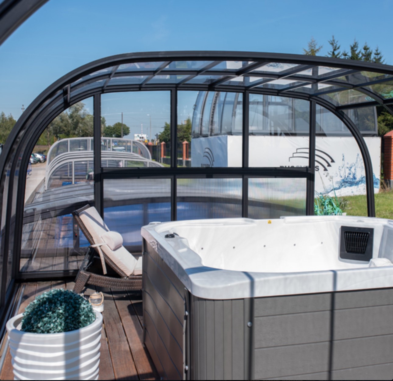 Высота и простор, предоставляемые этой моделью, позволят вам расслабиться каждым холодным вечером и солнечным утром. Идеальное покрытие для СПА-бассейна.