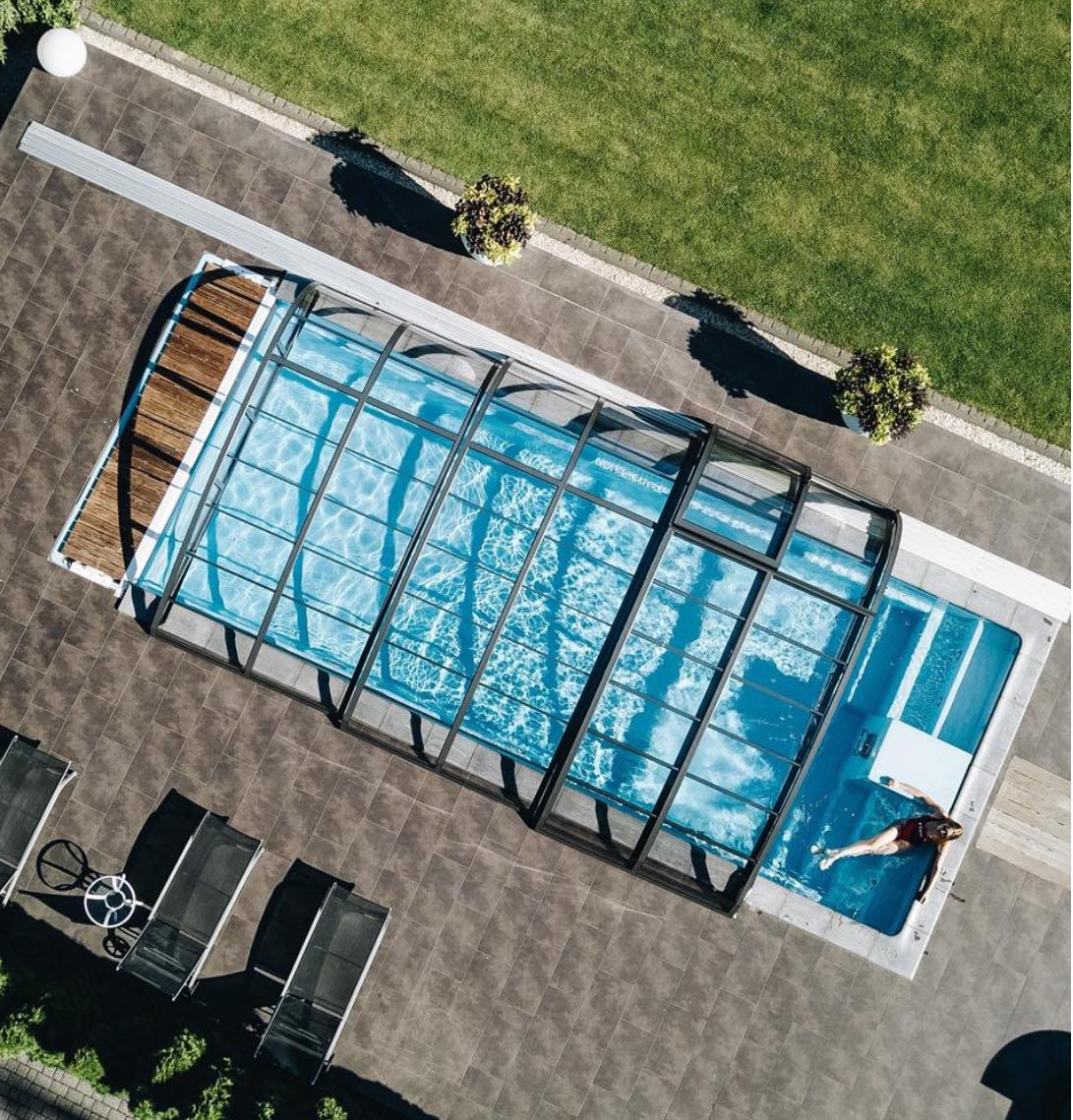 Модель Trinidad выделяется лестницами, расположенными по обеим сторонам ее короткой стенки, разделенными сиденьем посередине. Такая конфигурация не только облегчает вход и выход из воды, но и гарантирует, что зона для купания останется свободной. Кроме того, модель включает камеру для установки подводной рулонной шторы, которая служит для защиты бассейна от детей и домашних животных, сохраняя при этом чистоту.