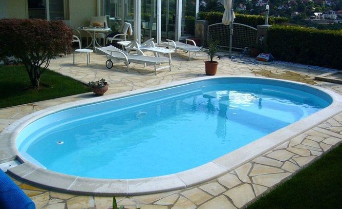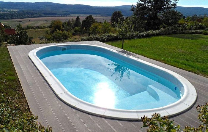 Класичний прямокутний басейн з римськими сходами лаконічно впишеться в будь-який ландшафт.