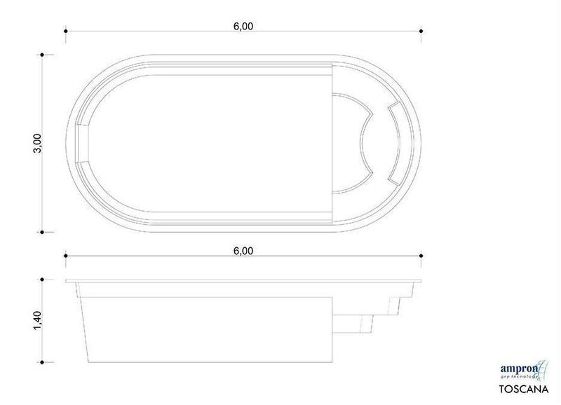 Найбільш місткий басейн класичної прямокутної форми з римськими сходами.