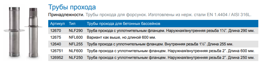 Стінова форсунка подачі води AQA BI-E для бетонних басейнів.